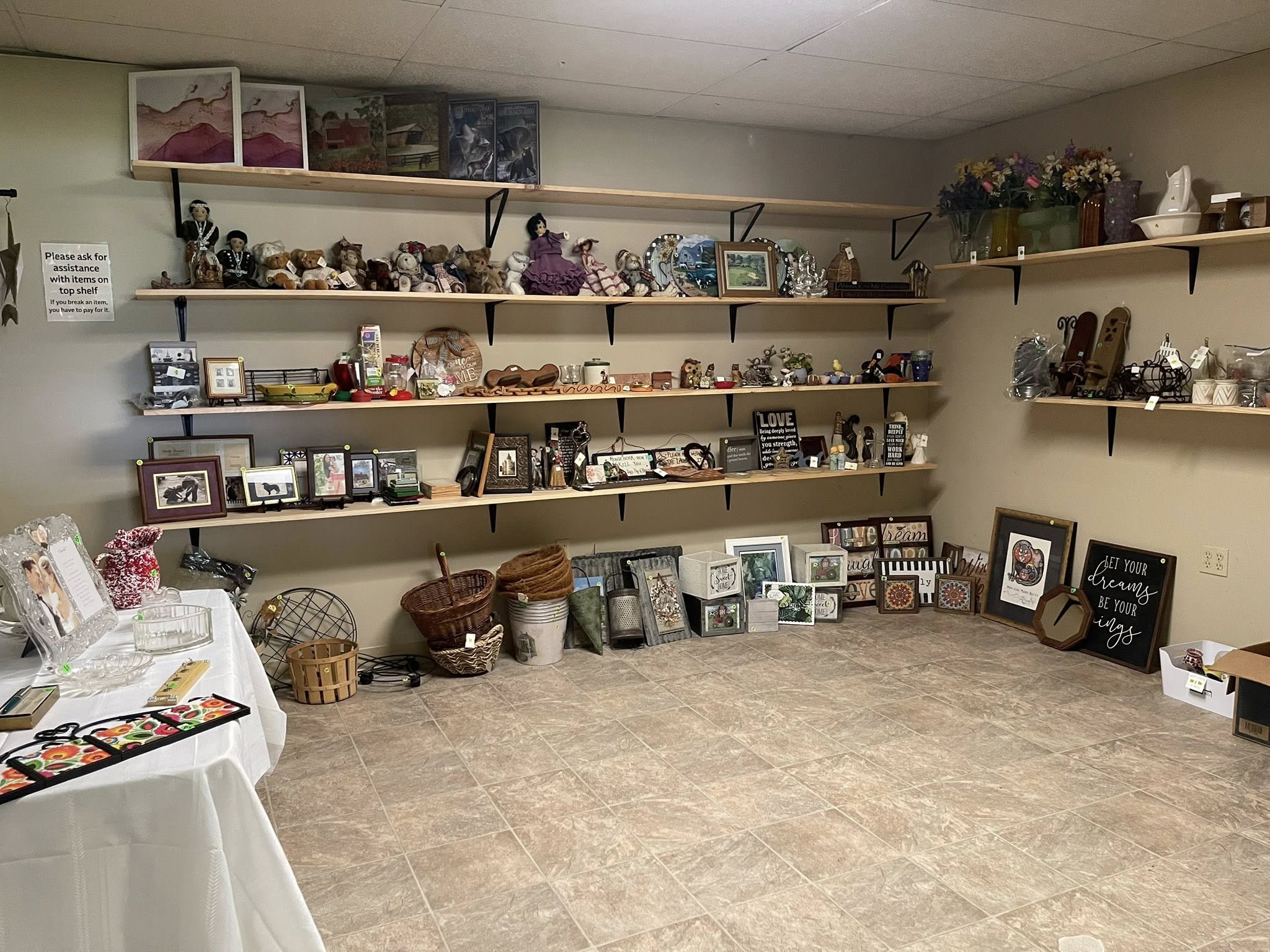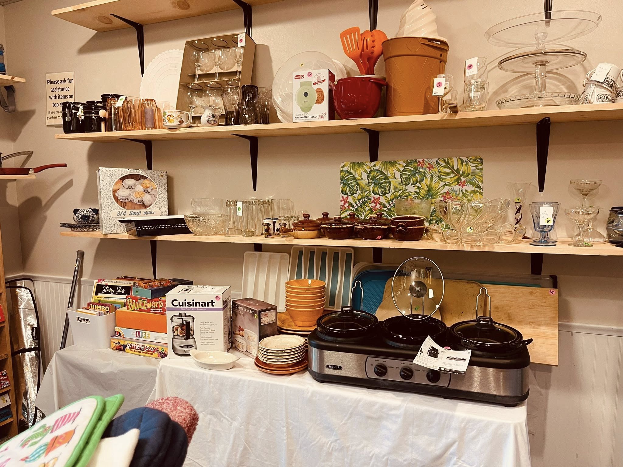 With two storefronts, you can enjoy finding amazing deals on gently used and sometimes new home decor, furniture, clothing, books, jewelry, kitchen items, and more! The fun is in finding all of the new things we add every week, thanks to our amazing donors.